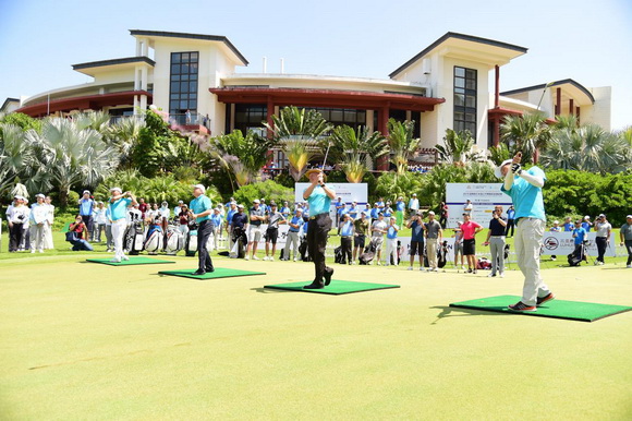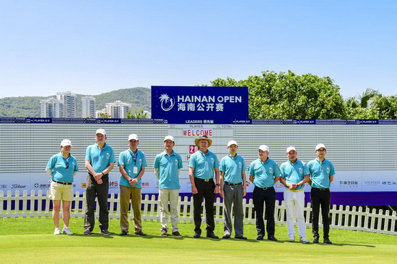 12点30分,在职业业余配对赛正式打响前,2018海南公开赛暨欧巡挑战赛开球仪式率先在主计分板前举行。欧巡挑战巡回赛海南公开赛赛事总监马茨·兰纳(Mats Lanner)、海南省体育赛事中心主任张华,海南省高尔夫球协会常务副秘书长高武忠以及海南省高协副秘书长、三亚鹿回头高尔夫球会总经理戴玉应为今年的大赛开球。