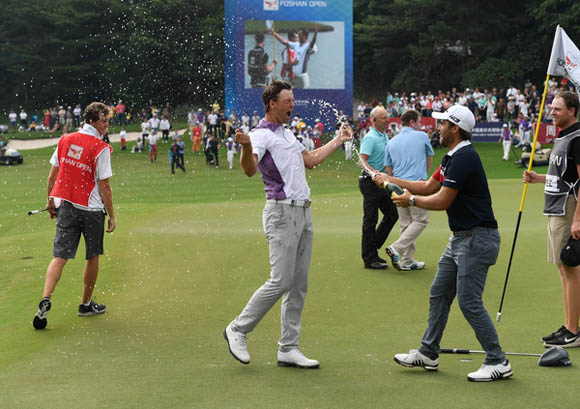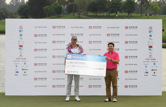 【golftime讯】 10月21日,2018欧洲高尔夫球挑战巡回赛—佛山公开赛在佛山高尔夫球会精彩落幕。54洞领先者法国球员维克多·佩雷兹(Victor Perez)在决赛轮与22岁的苏格兰新星罗伯特·麦金太尔 (Robert Macintyre)战平,双双交出-19杆,将赛事带入加洞赛。最终,佩雷兹顶住压力,一杆险胜麦金太尔,捧起冠军奖杯“广粤杯”并收获了8万美金的奖金。美国球员西恩·克罗克 (Sean Crocker)与英格兰球员马克思·奥林(Max Orrin)一杆落后,获得并列第三名。罗学文交出278杆(70-70-67-71,-10),并列第26名,获得本届赛事的“最佳中国球员”奖。