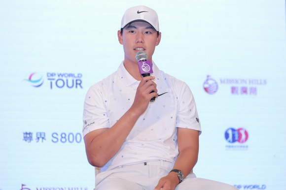 新闻发布会现场,欧巡赛球员吴阿顺、丁文一、马丁·库夫拉(Martin Couvra)、安迪·苏利文(Andy Sullivan),中巡赛球员郑蕴和、匡洋,共同出席球员见面会,与大家分享对本周比赛的期待。